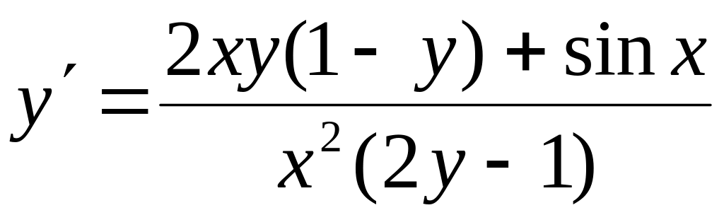 Чтобы найти производную неявной функции y = y(x), нужно взять производную от обеих частей равенства F(x, y) = 0, считая у функцией от х, и полученное уравнение разрешить относительно .