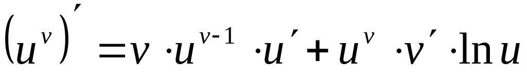 Пусть u = u(x) > 0 и v = v(x) – функции, имеющие производные в фиксированной точке x. Найдем производную функции y = uv. Логарифмируя это равенство, получим: ln y = v ln u.