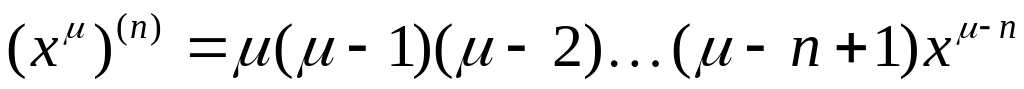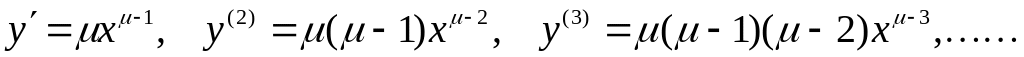 1) Рассмотрим сначала степенную функцию (х > 0, μR). Последовательно дифференцируя, будем иметь