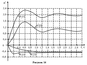 Переходный процесс лучше строить на миллиметровке. Он определяется суммированием ординат составляющих h1(t), h2(t), h3(t). Переходная функция n*(t) – скорости вращения вала двигателя в относительных единицах и ее составляющие показаны на рисунке 14.