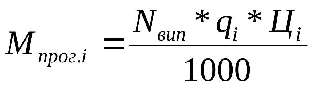 де qі – норма витрат і-го матеріалу, нат.од./шт.;