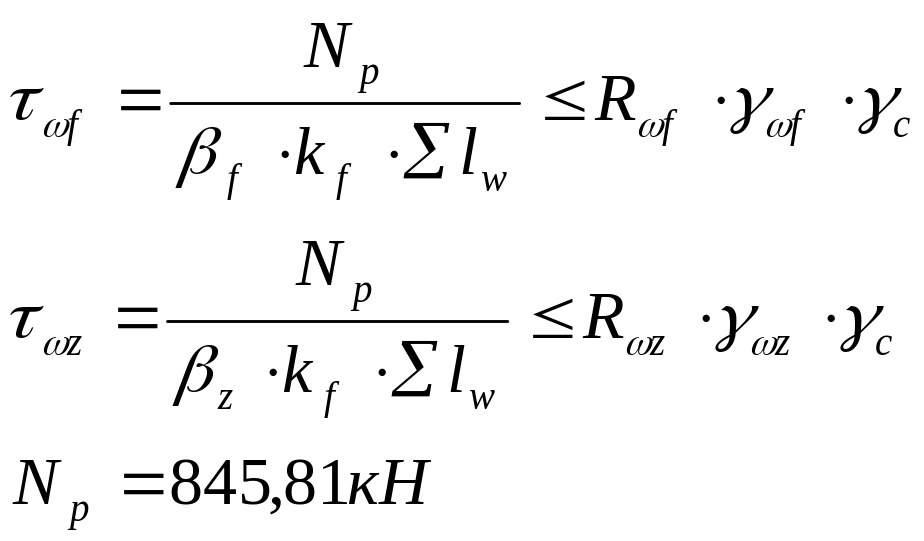 Р асчет сварных швов, прикрепляющих стойку 4-7 к фасонке.