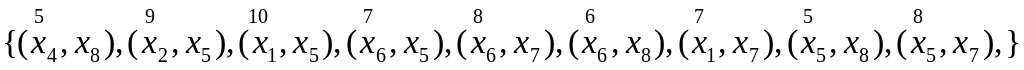 Так как ребра взвешены весами (указаны над круглыми скобками), выберем ребро с минимальным значением веса . Если таких ребер несколько, то для продолжения вычислений на данном шаге можно выбрать любое из них.