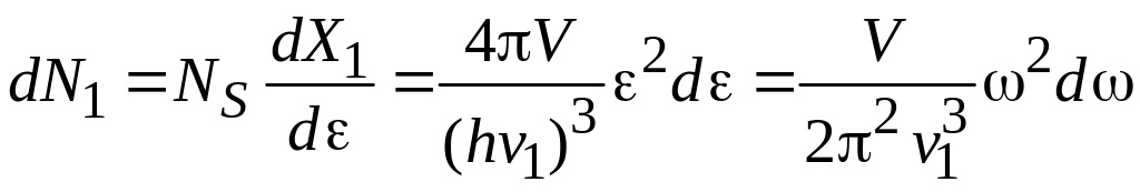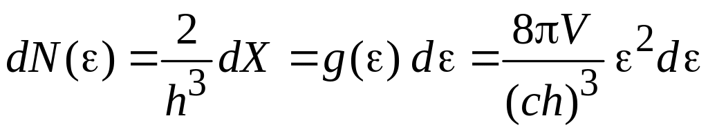 получаем плотность состояний и число состояний в бесконечно малом интервале частоты