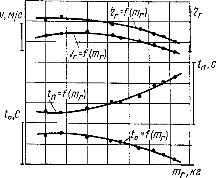 где vr — средняя скорость подъема груза (м/с), определяется делением полной высоты подъема hr груза в м на время подъема ta, с; г|г — объемный коэффициент полезного действия системы — отношение времени tn перемещения оси подвеса без груза из край- него нижнего в крайнее верхнее положение к времени tn подъема груза; t0 — время опускания груза, с; тГ — масса груза, кг.