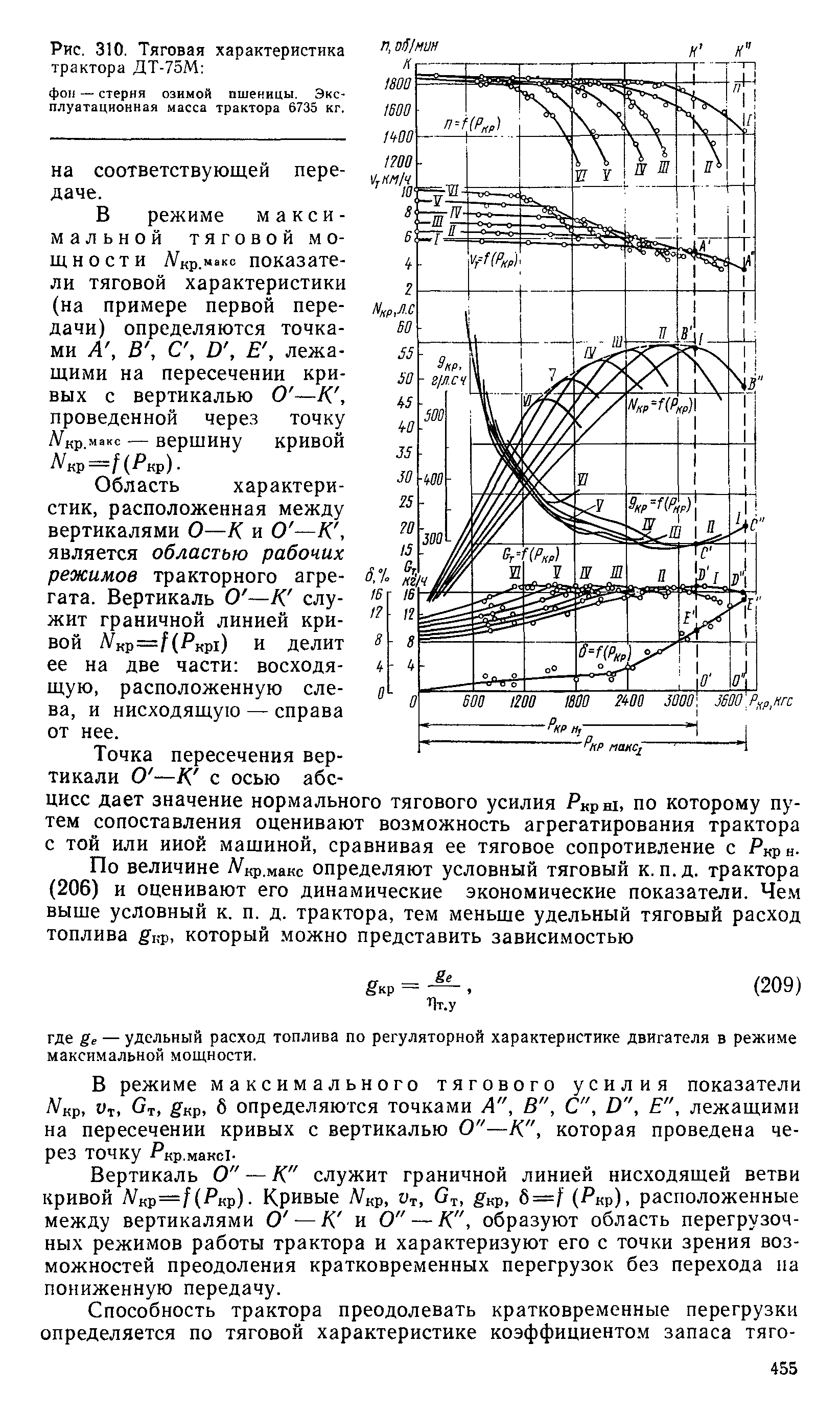 После подсчетов строят тяговую характеристику (рис. 310) и ана- лизируют полученные данные.