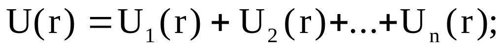2) Величина U является аддитивной, то есть если в области движения частицы имеется несколько потенциальных силовых полей, то полная потенциальная энергия частицы равна сумме потенциальных энергий ее в каждом из полей в отдельности: