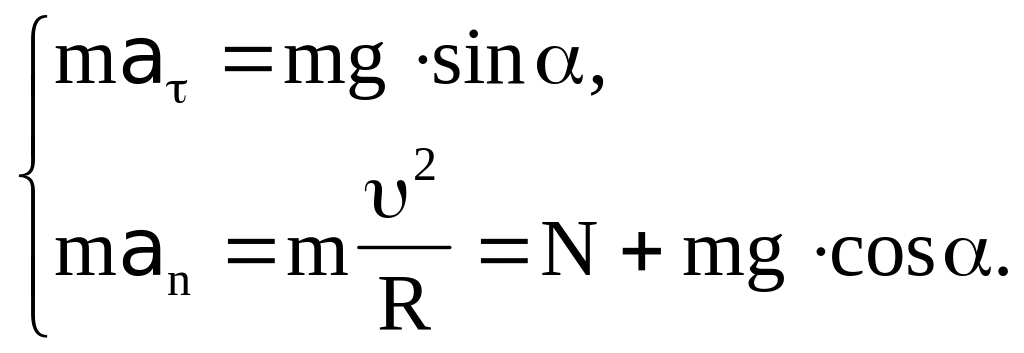Второе из этих уравнений определяет силу натяжения N и “закон” ее изменения при вращении частицы, поэтому в дальнейшем мы его рассматривать не будем.