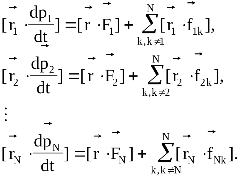 Умножим векторно каждое из этих уравнений почленно слева на соответствующий радиус-вектор положения частицы в выбранной системе отсчета: