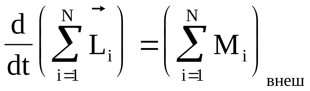 Скорость изменения момента импульса системы равна векторной сумме моментов всех внешних сил, действующих на систему.