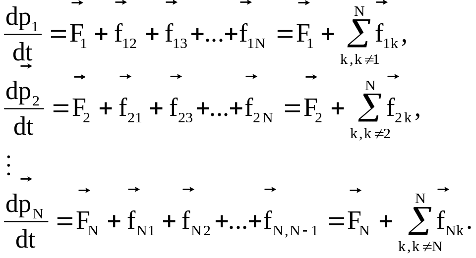 В соответствии с этим равенством уравнения движения частиц системы примут вид