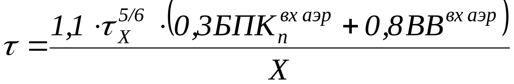 Период аэрации в аэротенке-вытеснителе рассчитываем по формуле:
