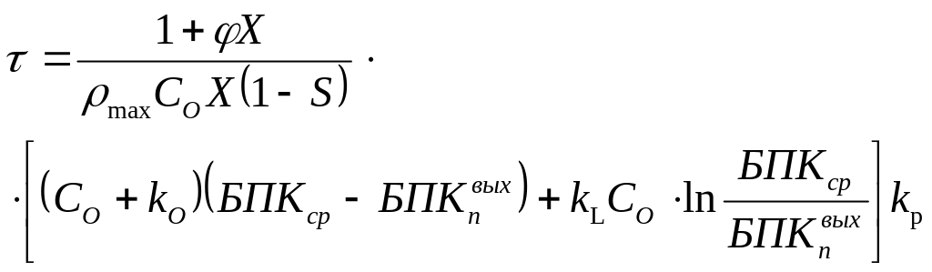 Объем аэротенка, необходимый для заданной глубины очистки по БПК найдем по СНиП 2.04.03-85, п.п. 6.1446.146.