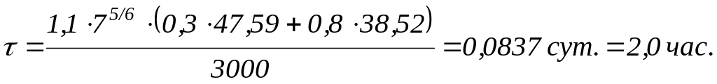 Зададим концентрацию активного ила в аэротенке в диапазоне от 1,5 до 3,5 г/л, например 3000 мг/л. Тогда требуемый период аэрации сточной воды составит: