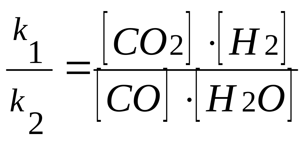 Vnp. = k1[CO][H2О]; Vo6p. = k2[CО2][H2]