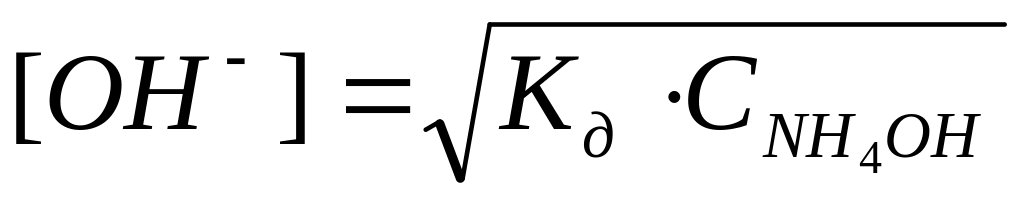 NH4OH NH4+ + OH-, Kд=1,8·10-5