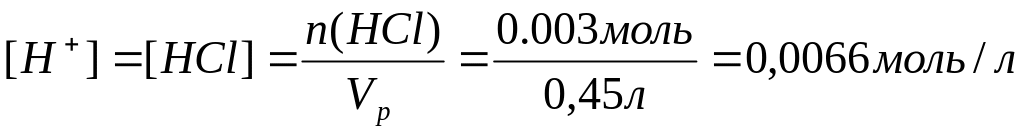 n(HCl) = C(HCl) Vp-ра = 0,02 моль/л 0,3 л = 0,006 моль.