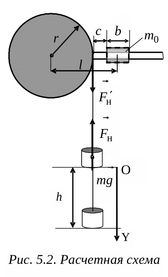 В проекции на ось OY уравнение динамики поступательного движения груза имеет вид (см. рис. 5.2):