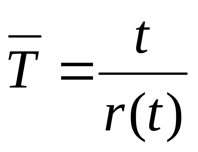 4. Средняя наработка на отказ T — это отношение суммарной наработки восстанавливаемого объекта к математическому ожиданию числа его отказов в течение наработки.