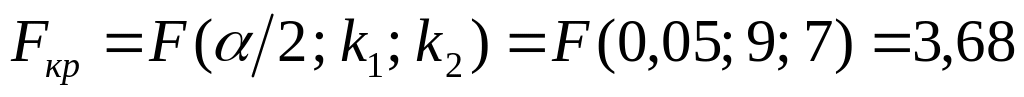 Уравнение регрессии считается адекватным, если < . Сравнивая значения и , убеждаемся, что > , следовательно, полученное уравнение регрессии адекватно и может быть принято.