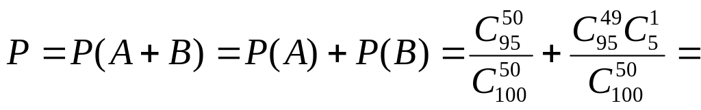 2.2. Определить вероятность того, что партия в 100 изделий, среди которых j бракованных, будет принята при испытании, если условиями приема допускается не более 1 бракованного изделия из 50.