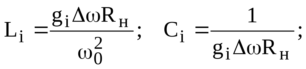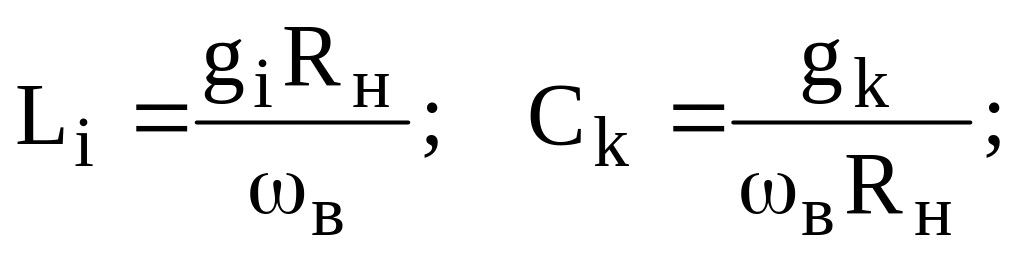 У табл. 1.1 наведено схеми Т-подібних і П-подібних каскадів драбинного кола і формули перерахунку g-параметрів НЧ фільтру-прототипу в параметри елементів проектованого фільтру.