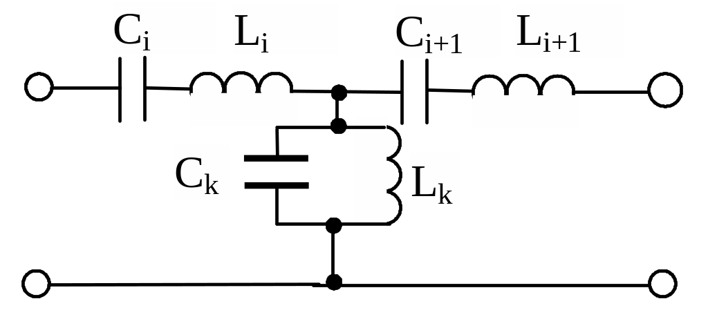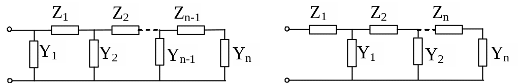 За передавальною функцією низькочастотного фільтру-прототипу визначаються число ланок і параметри елементів драбинного кола. Для драбинної реалізації фільтру можуть бути використані кола на рис. 1.8.