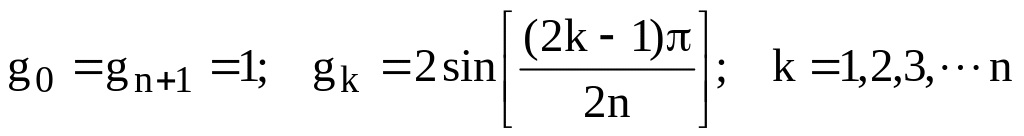 У наведених співвідношеннях g0 відповідає опору генератора, RГ, gn+1 відповідає опору навантаження Rн, n – порядок фільтру (кількість ланок драбинного кола), Ас – амплітуда осциляцій в смузі пропускання в дБ.