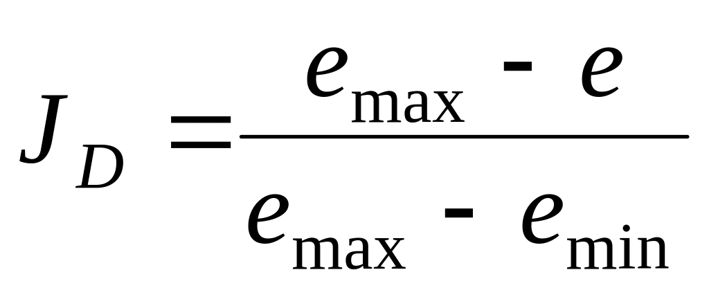 Величина JD может изменяться в пределах от нуля до единицы: при e=emax грунт находится в самом рыхлом состоянии и JD=0, при e=emin грунт имеет наиболее плотное сложение и JD=1 (рис. 4.1).