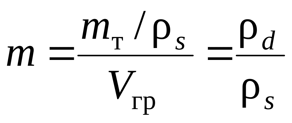 Объем твердых частиц в единице объема грунта (скелетность грунта m) составляет (см. рис. 1.1)