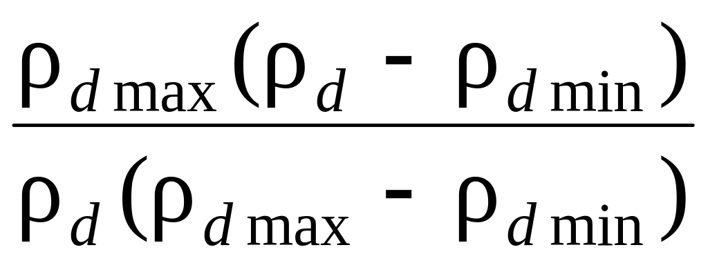 где ρdmax, ρdmin и ρd – соответственно плотности сухого несвязного грунта в самом плотном, самом рыхлом и естественном состояниях.