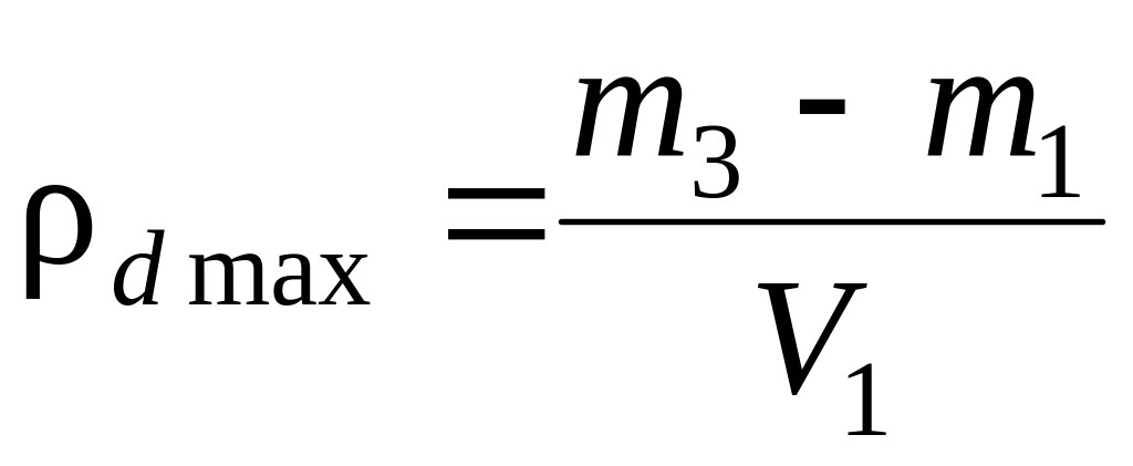 По результатам определения масс m2, m3 плотности сухого песка в максимально рыхлом и максимально плотном состояниях рассчитываются по зависимостям