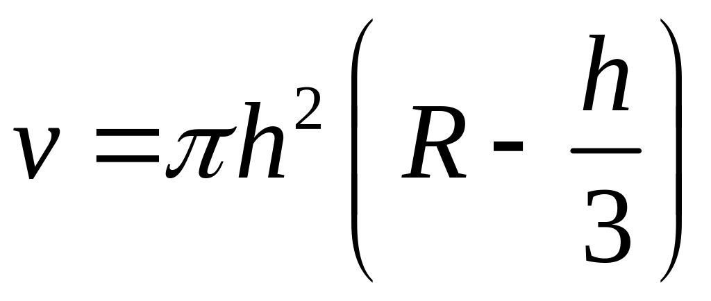 По результатам измерений, представленным массивами, рассчитайте объем шарового сегмента по формуле: