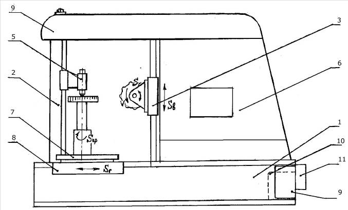 Гитара скоростей 9 определяет частоту вращения шпинделя в минуту.