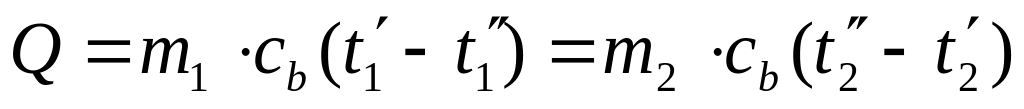 Тепловая мощность теплообменника находится из уравнения теплового баланса: