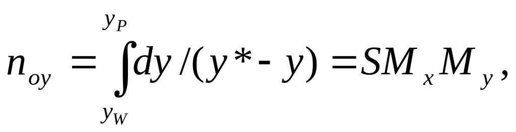 где S – площадь, ограниченная кривой, ординатами yW и yP и осью абсцисс ;