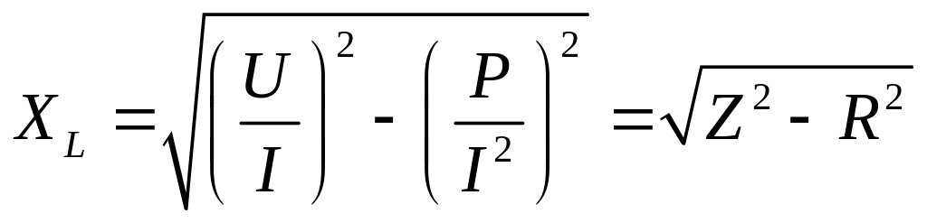 Для определения индуктивного сопротивления, в частности из треугольника мощностей, получим