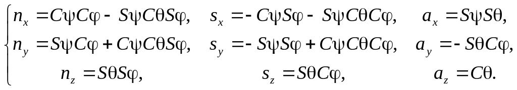 Нахождение обобщенных координат в явном виде достаточно сложная задача, поскольку уравнения являются нелинейными. Для упрощения задачи существует ряд методов предназначенных для более простого получения аналитических выражений. Метод обратных преобразований позволяет решать обратную задачу кинематики простых манипуляторов. Суть метода заключается в определение углов поворотов звеньев из уравнений для отдельных элементов имеющегося матричного уравнения. Например, для углов Эйлера (задающих ориентацию схвата) (3) получим систему уравнений (37).