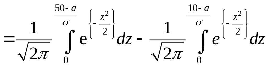 Приклад 3.7. Контрольно-вимірювальний пристрій має систематичну погрішність +30 мВ і випадкову погрішність, розподілену за нормальним законом зі середньоквадратичним відхиленням 10 мВ. Знайти ймовірність того, що загальна погрішність пристрою прийме значення, що належить інтервалу 10 ‑ 50 мВ.