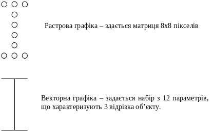 Відмінності зображення у растровій графіці та векторній графіці видно з Рис.3.4.