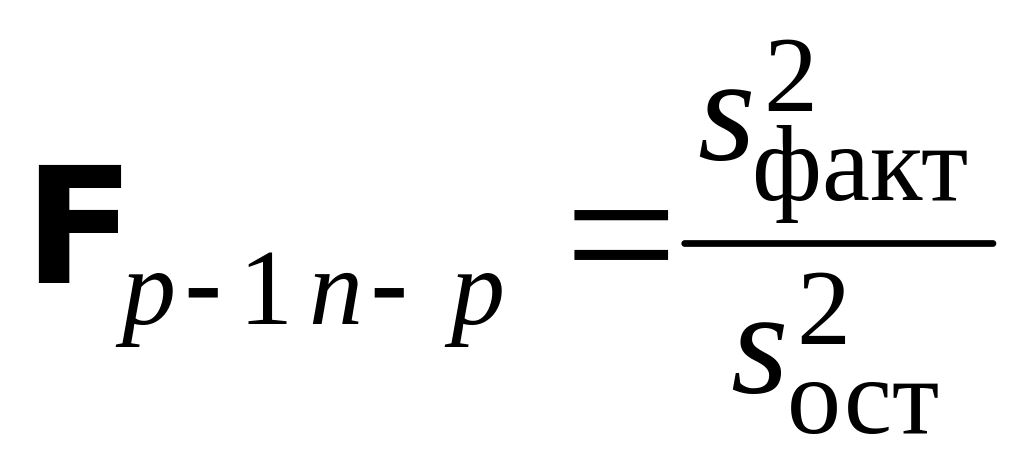 распределена (при условии справедливости гипотезы H0) по закону Фишера со степенями свободы p – 1 и n – p. Эта случайная величина и является критерием для рассматриваемой гипотезы.