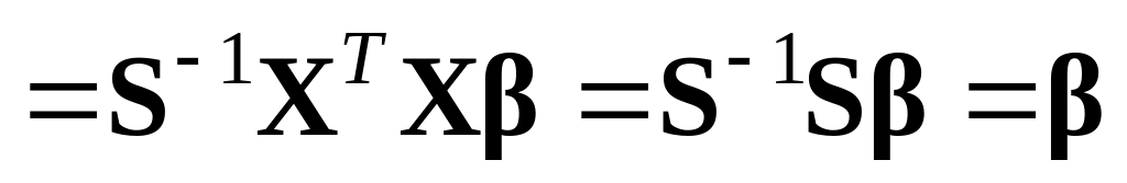 Пусть y ( y1 y2 ... yN)T – вектор-столбец наблюдений, β (1 2 ... p)T – вектор-столбец неизвестных параметров. Тогда равенства (14) можно записать одним матричным равенством , так что выполняется первое из равенств (3). Далее будет предполагаться, что наблюдения y1, y2, ..., yN некоррелированны и имеют одинаковую дисперсию 2, т. е. выполняется и второе равенство (3).