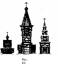 Центральное место любого поселения занимала церковь. В культовом строительстве сложилось 3 типа деревянных церквей: клетская церковь, шатровый «круглый» храм и ярусная церковь (рис. 93).