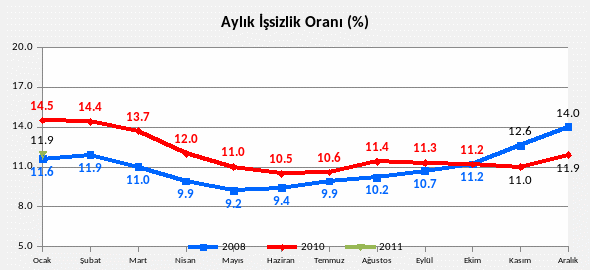 2011 yılının Şubat döneminde işsizlik oranı yüzde 11.9 düzeyindeydi.