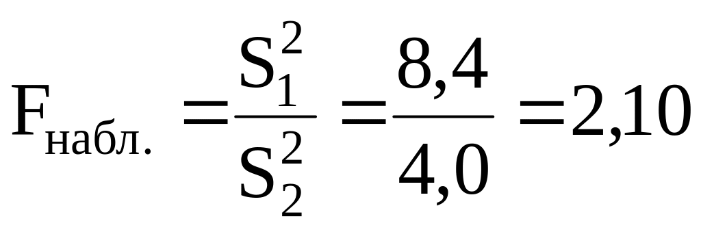 Використовуємо критерій Фішера-Снедекора, як відношення більшої дисперсії до меншої.