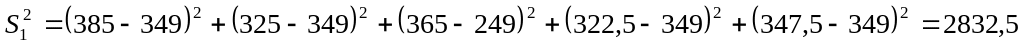 Т.к. Тнабл>tкр (2,24>2,05), то нульову гіпотезу про рівність середніх генеральних сукупностей відкидаємо, тобто середні ціни продажів на двох товарних ринках розрізняються значно.