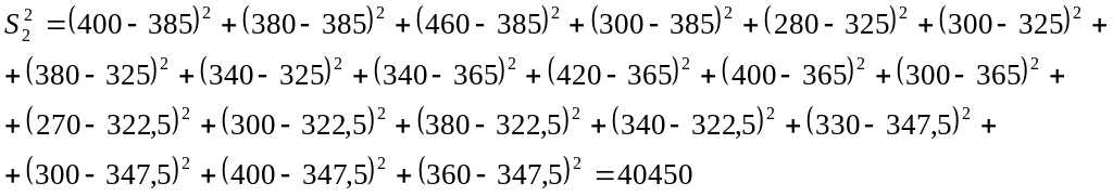 Т.к. Fнабл<Fкр (2,10<2,41), то нема підстави відкидати нульову гіпотезу про рівність генеральних дисперсій. Отже, умови продажу продукції на двох товарних ринках рівні.