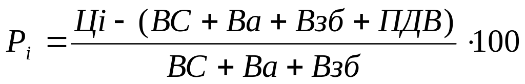 Рентабельність окремого виду продукції (Рі) у відповідності до Методичних рекомендацій з формування собівартості продукції (робіт, послуг) у промисловості розраховується: