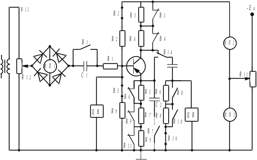 5. Повторить п. 3 для величин коллекторного сопротивления R3+R4 (В3 и В4 разомкнуты).