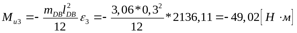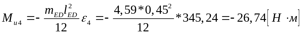 Подставляем рассчитанные величины в формулу (2.6) и определяем величину инерционного момента [Н·м]. Направление инерционного момента противоположно направлению углового ускорения звена.